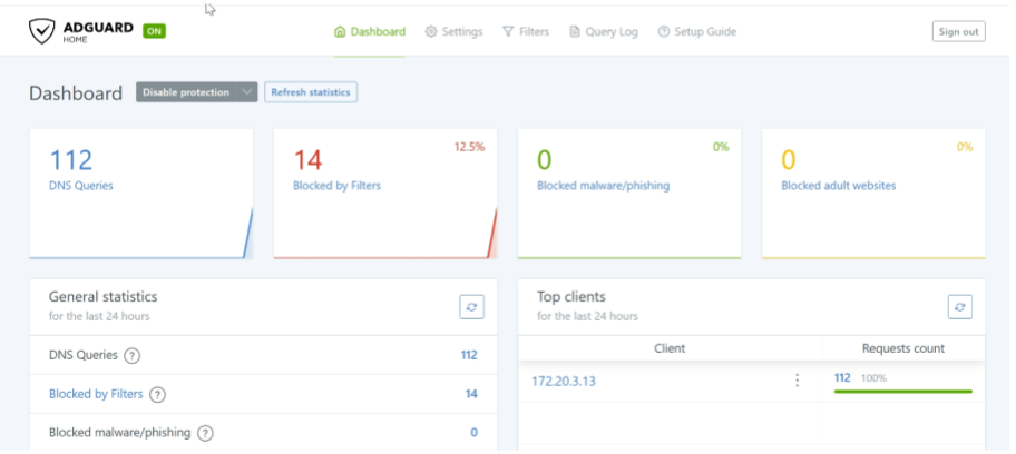 When Putty finally displayed that the commands above were successfully executed, I then accessed my personal web browser’s URL on my Windows 11 host machine and typed in the IP address from Rocky, which was 172.20.3.59. This gave me a graphical user interface for my host machine, offering a dashboard full of management features. It includes options to block, filter, or monitor any web traffic communicating with my host machine. Ads are automatically filtered on each website I visit based on my pre-configurations.