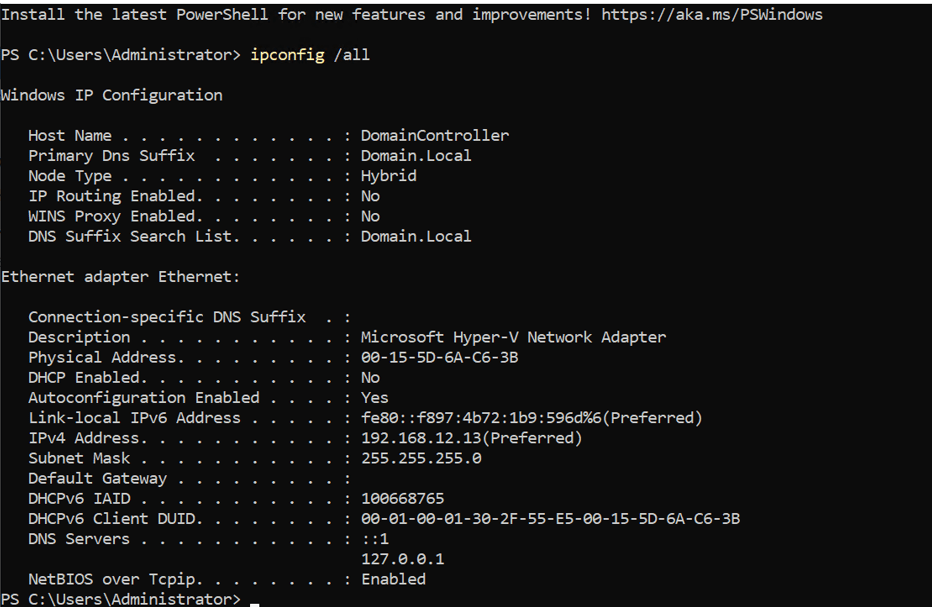 - Hostname: Domain Controller