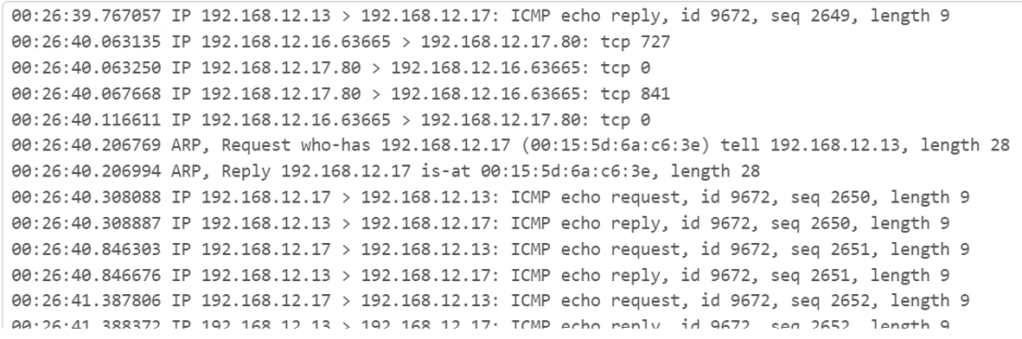 Another feature from the Pfsense GUI is to provide live network traffic of all connected devices within a local area network (LAN). The image above shows packet captures of traffic being constantly communicated between the firewall itself, the server, and the Windows 11 machine. Notice how you can see each of the three VM’s IP addresses responding to each other, using various ports and protocols. Some protocols analyzed from the capture are TCP, ICMP, and ARP. In certain lines, you can see the phrase “who has which IP address” in the capture. The devices are using the address resolution protocol (ARP) to see which IP address has which MAC address.